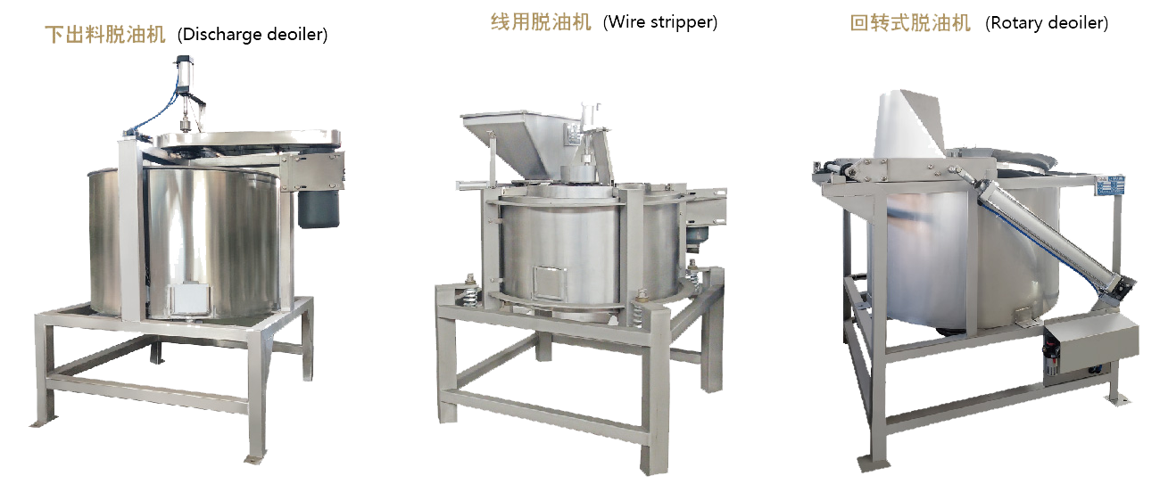 用于各種油炸食品生產線中固體食品與粘附的液體油的分離,是油炸花生、蠶豆、腰果等堅果類及薯片類生產線的配套設備之一。